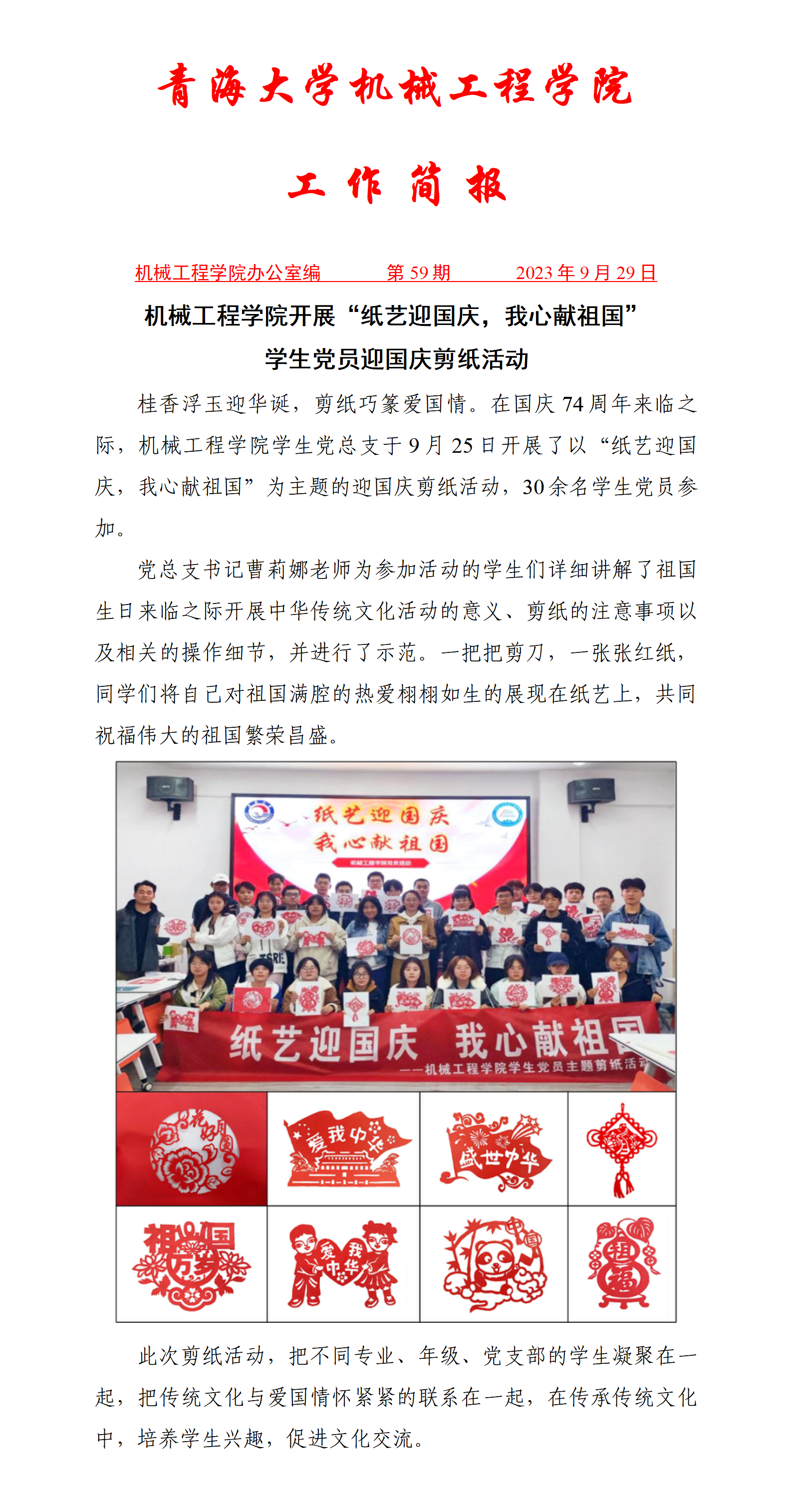 雷速体育 开展“纸艺迎国庆,我心献祖国”学生党员迎国庆剪纸活动