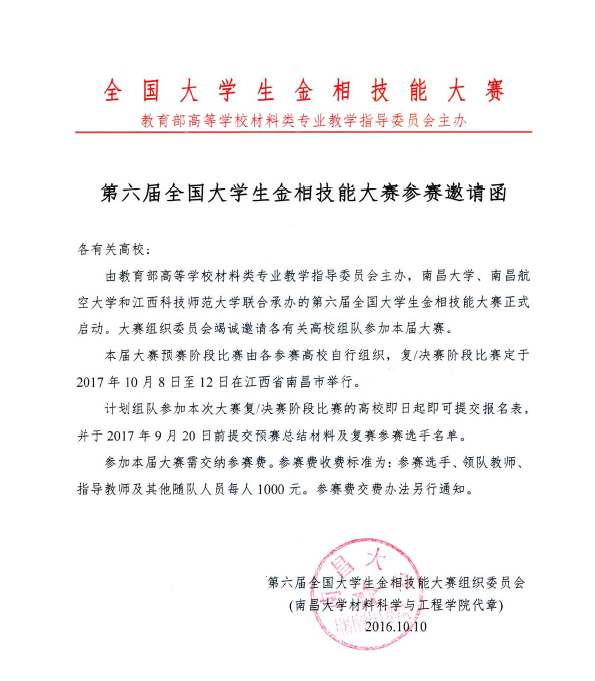 附件2:第六届全国大学生金相技能大赛邀请函