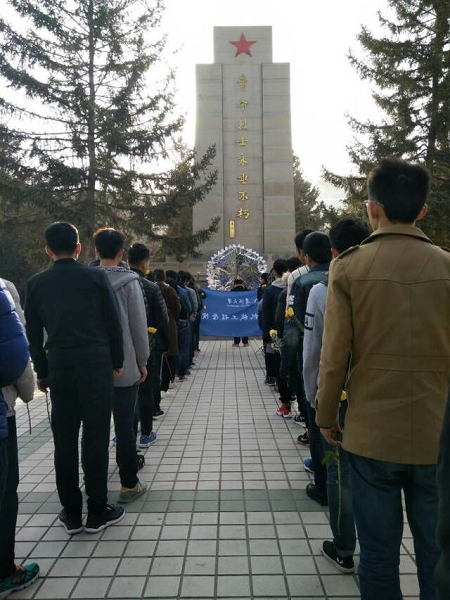 3月26日早8:00,参加扫墓人员在综合楼前集合,统一乘坐校车前往西宁市烈士陵园。怀着沉重的心情,大家排队有序进入烈士陵园,向人民英雄纪念碑敬献花圈,之后同学们佩戴白色胸花,手持黄菊,依次向人民英雄纪念碑献花,并举行了重温入党誓词活动。入党誓词活动结束后,全体默哀三分钟。