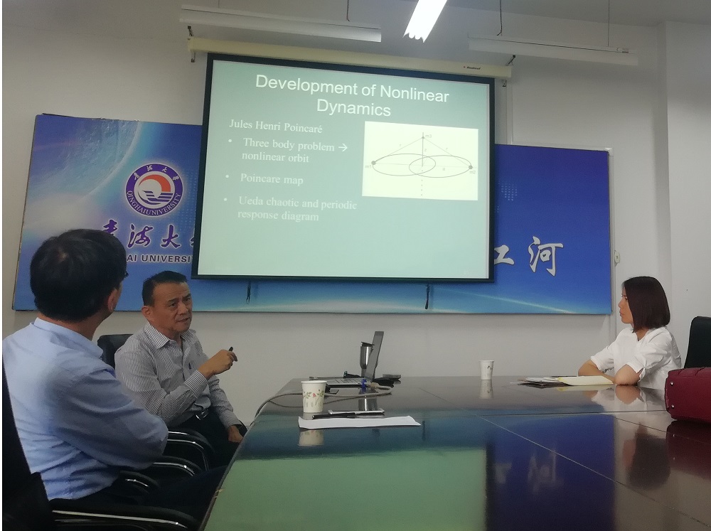 报告会上,戴教授分析了线性系统和非线性系统的特点,着重讲述了非线性动力学的发展与应用,分享了自己的研究成果,与老师和学生展开了多方面的讨论。