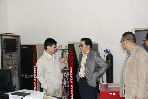 参观过程中,张院长详细了解了雷速体育 现有的教学科研设备的配备及使用情况,面对如此齐全的机加工、熔铸及检测等设备,张院长十分感兴趣,并表示希望与雷速体育 在新材料研究、材料加工及人才培养等方面进行深入合作,力求达到双赢。
