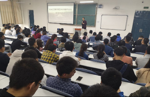 毕业生近年来就业情况进行了讲解,向同学们提出了要求,一是做好职业规划,二是转变就业观念,三是积极就业创业。